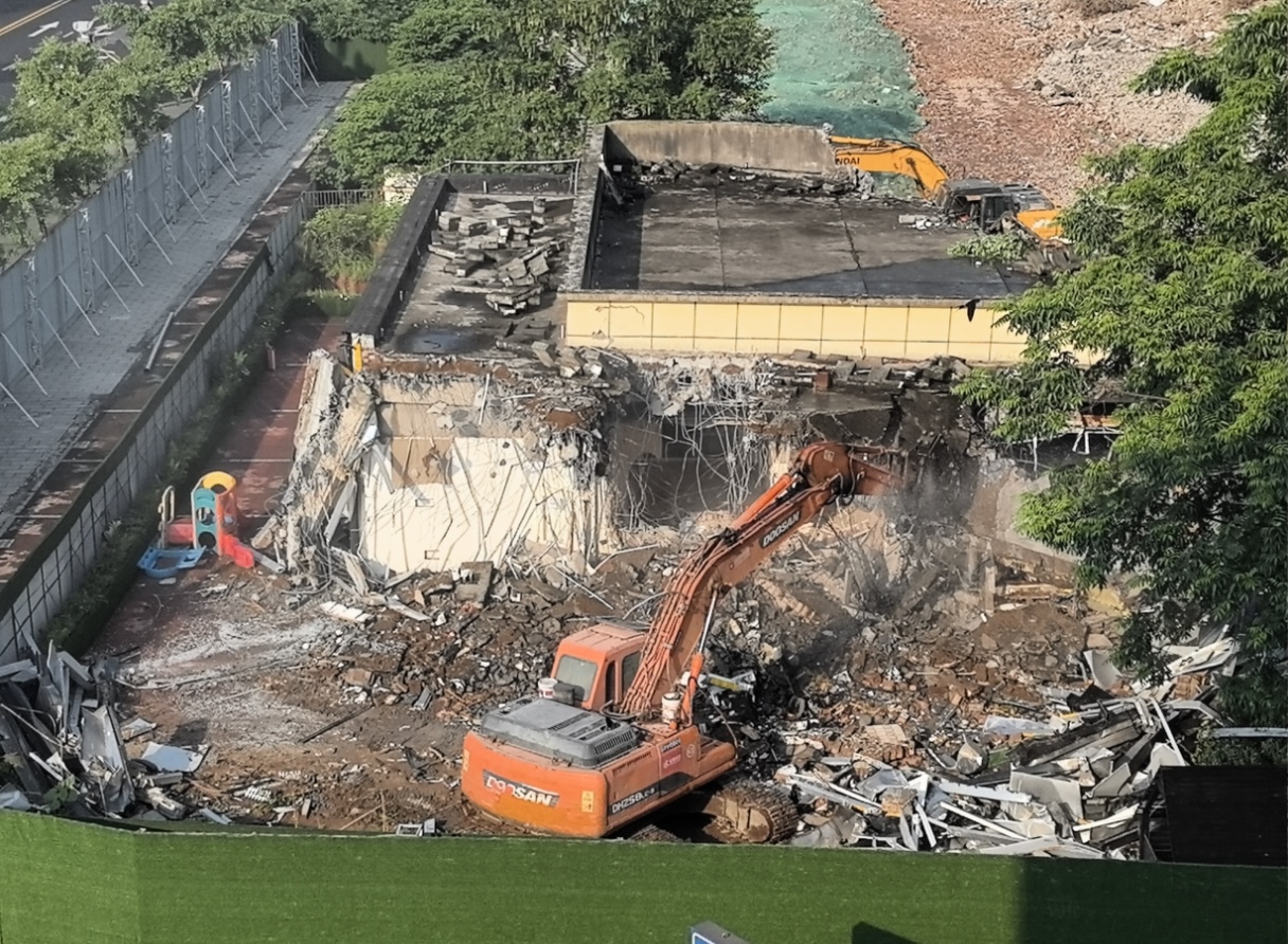 下午,拆除人员不顾园方人员的阻拦,将该区域大部分房间搬空,总面积约2404.08平方米。晚上,该区域拉上了警戒线,挖掘机入场,开始拆除地面建筑。